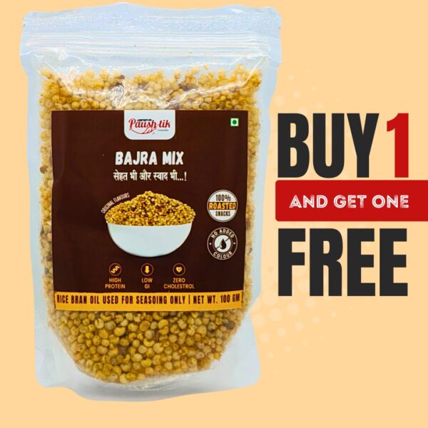 A wholesome mix of Pear Millets, Yellow Lentils, and Black Pepper, seasoned with Rice Bran Oil, Salt & Spices for a deliciously crunchy and nutritious snack.