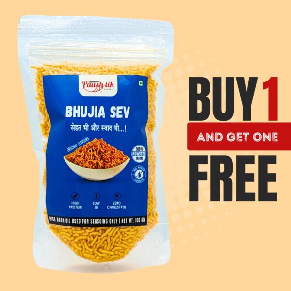 A crispy, roasted version of the traditional sev, made with Bengal Gram Flour, Corn Flour, and Salt, lightly seasoned with Rice Bran Oil & Spices for a flavorful crunch.