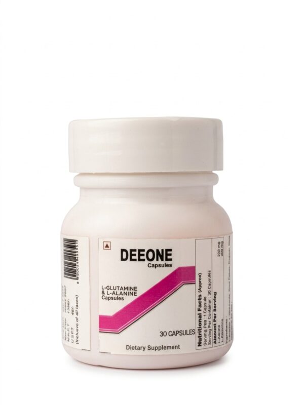 DEEONE Capsules are a scientifically formulated dietary supplement combining L-Glutamine and L-Alanine—two essential amino acids that play a vital role in muscle recovery, gut health, and energy production.