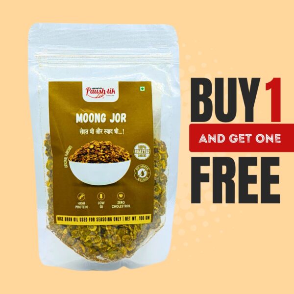 Delicious Beaten Green Gram combined with Black Pepper, Turmeric, Salt & Spices, and seasoned with Rice Bran Oil, offering a satisfying crunch with every bite.