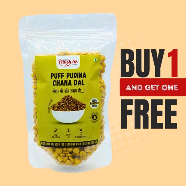 A refreshing and crunchy snack made with Bengal Gram Flour, Corn Flour, and Pudina Powder, enhanced with Salt, Spices, and Rice Bran Oil for a light yet flavorful bite.