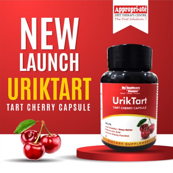 UrikTart Tart Cherry Capsules are a natural solution to improve joint mobility, support better sleep, and manage uric acid levels effectively. Packed with the benefits of tart cherry extract, these capsules also aid in enhancing kidney function for overall wellness.